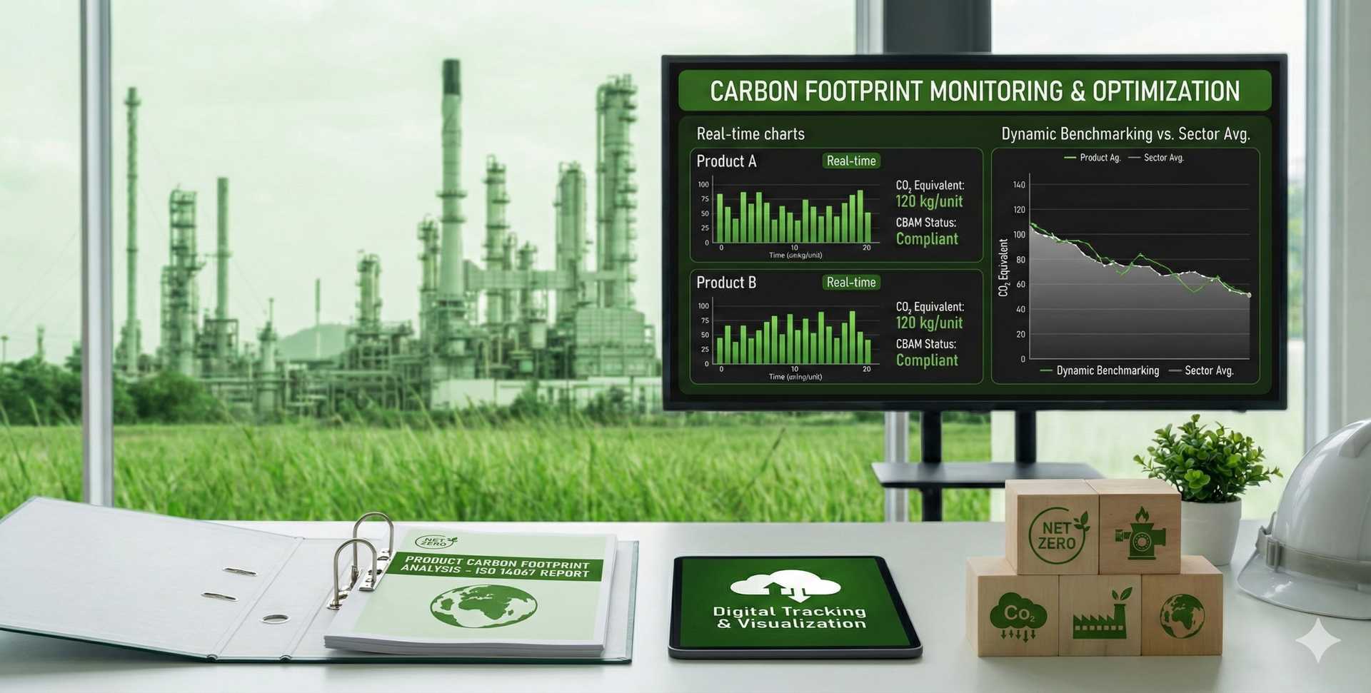 • Dijital İzleme ve Görselleştirme: Bulut tabanlı gösterge panelleri (dashboards) ve otomatik veri toplama sistemleri aracılığıyla ürün bazlı emisyonların sürekli takibi.